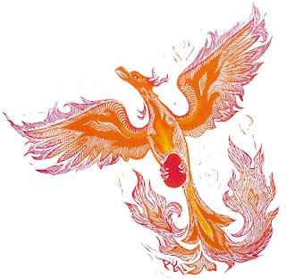 [Picture: Jealousy from Six Masks, rubber block print by AEGN, 1999.]